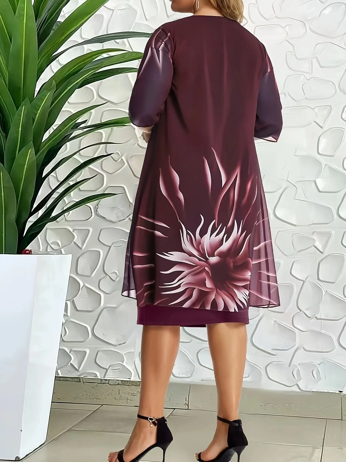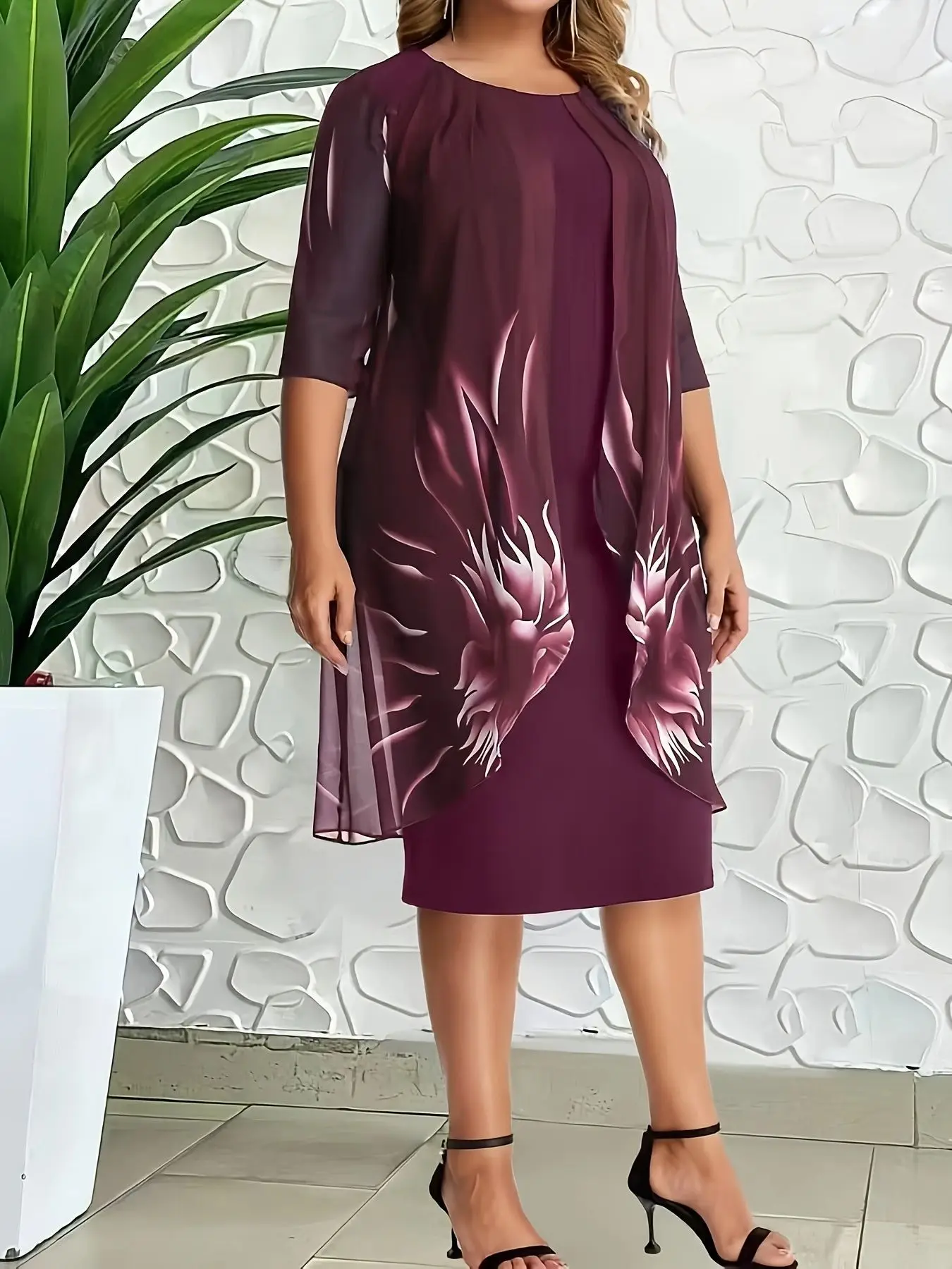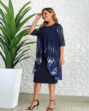 Step into elegance and confidence with this stunning plus-size print midi dress designed for women who want to look fabulous and feel great. The flattering cut gently shapes your curves for a slimmer, graceful silhouette that highlights what makes you unique.