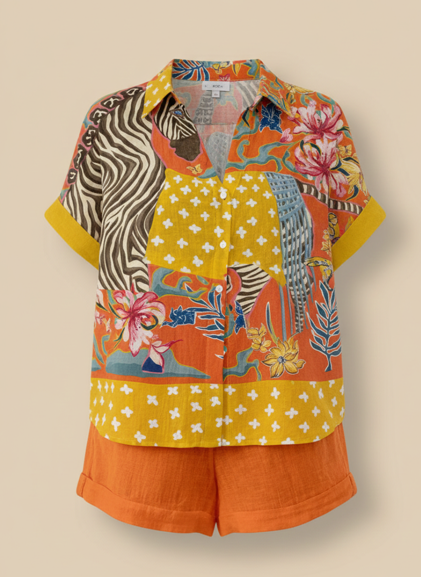 Norellia™ | Short Linen Set with Polka Dot Print.