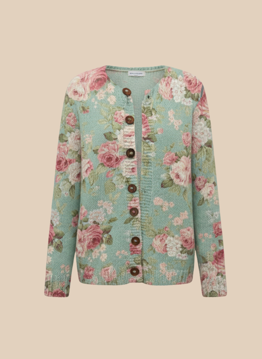 Fresh Retro Flowers Print Buttoned Cardigan Sweater