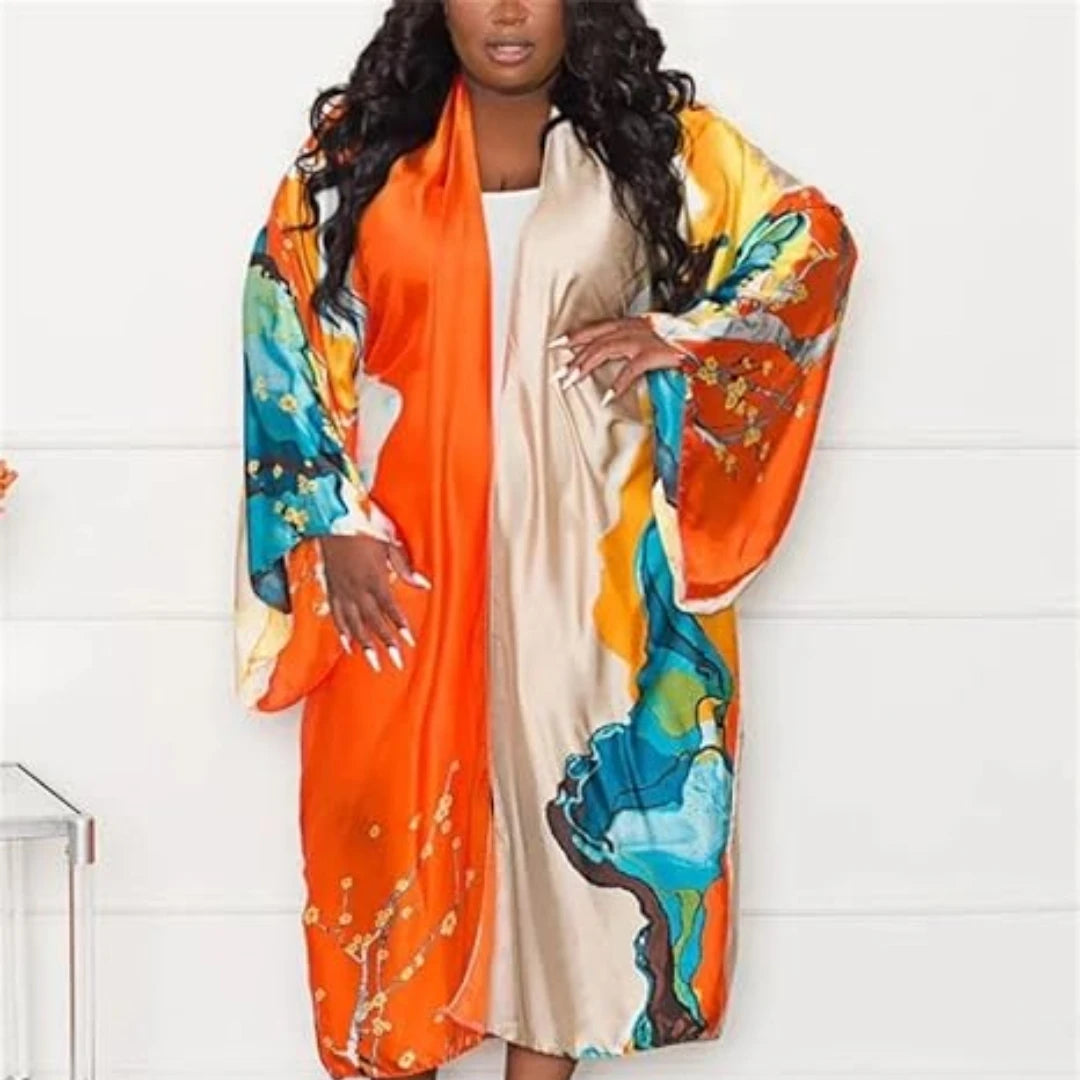 Add instant elegance to any outfit with this Silky Satin Long Kimono, designed for women who love effortless glamour and lightweight comfort. Its flowing silhouette, glossy satin finish, and open-front design make it the perfect piece for summer, beach days, layering outfits, or lounging in style.